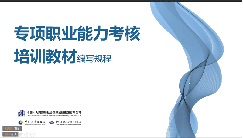 2022年11月14日下午,国家人社部教材办在腾讯会议组织召开了《2022年度第四批专项职业能力考核培训教材编写启动会》线上会议。