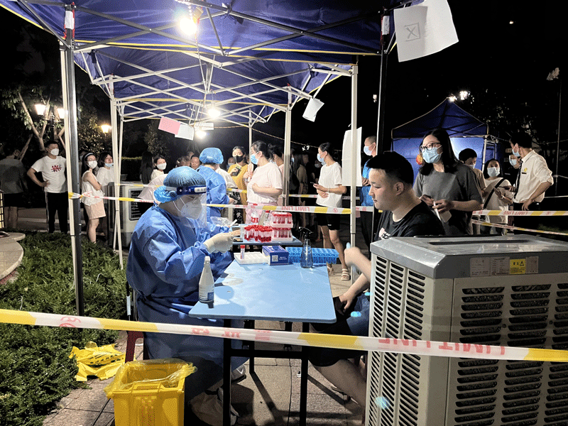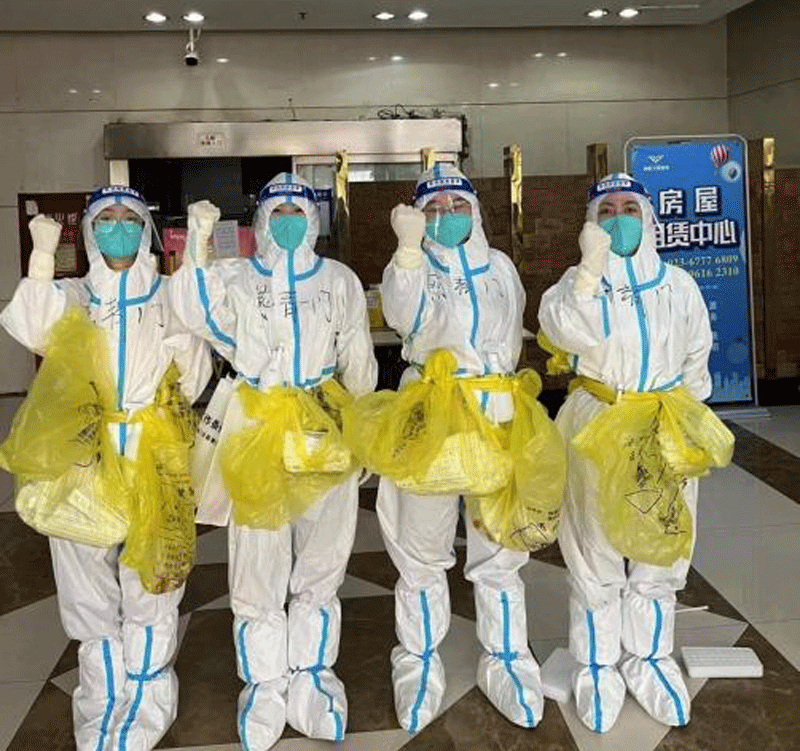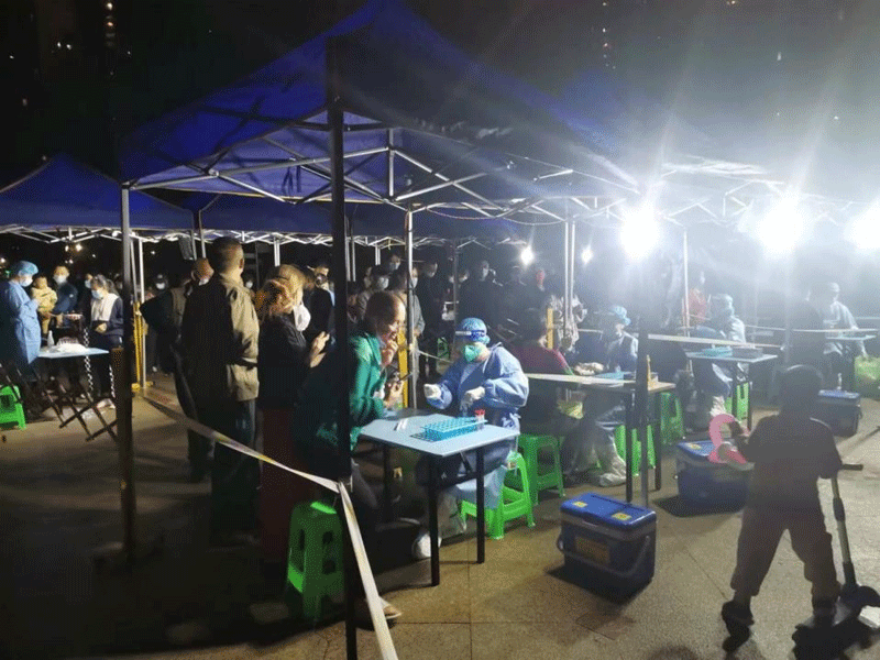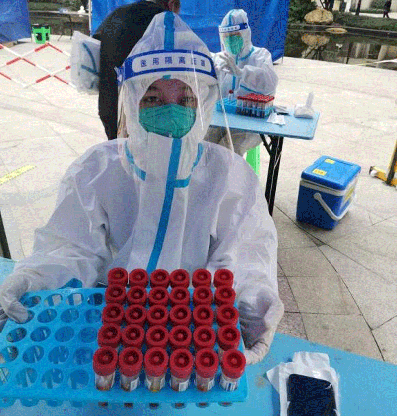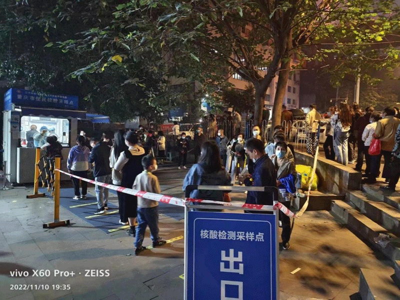 郑倩、周洪、刘玲玲、王梦成、杨文燚、岑治霖等数十名医护人员组成“追阳小分队”,和社区防疫人员一道入户为市民采集核酸,每天一层一层爬楼,完成采集工作后都累得双腿发麻走不动路。