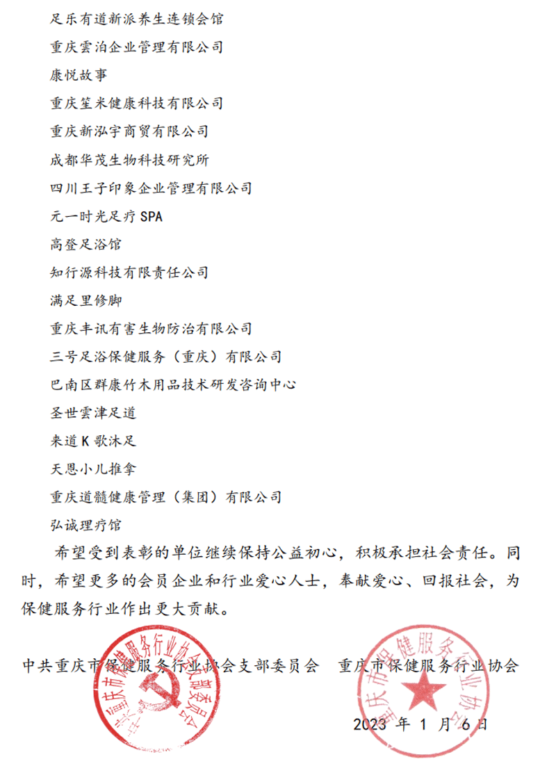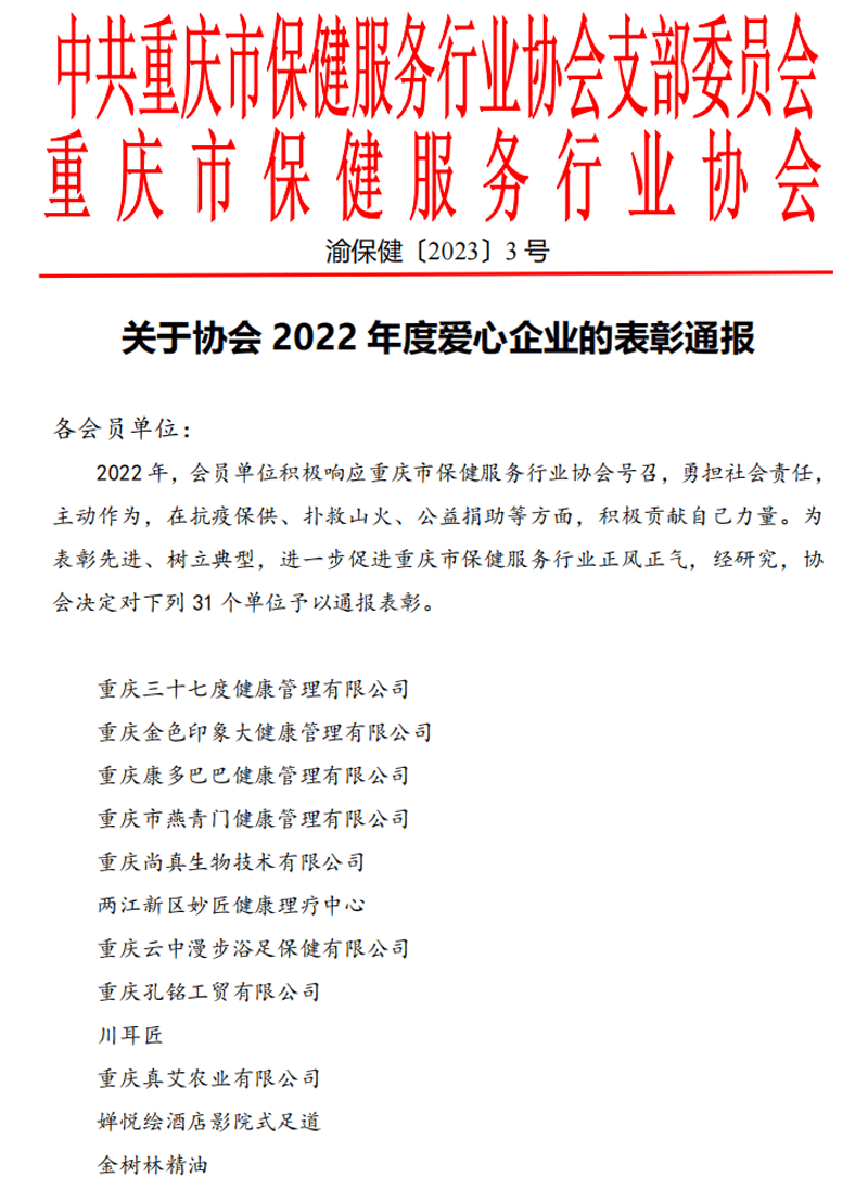 协会2022年度爱心企业的表彰通报