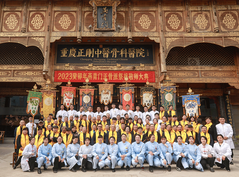 2023年3月5日,国家级中医学术流派、国家级非物质文化遗产“燕青门正骨派”一年一度祭祖敬师入门大典在协会理事单位重庆正刚中医骨科医院隆重举行,协会会长胡朝荣,副会长陈平、王景新,执行秘书长张哲受邀出席大典。