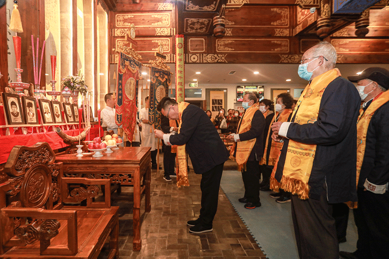 燕青门正骨派第八代掌门人朱怀宇率门下弟子向七代前辈行大礼