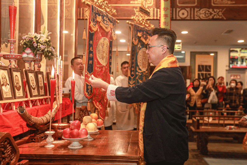 大典包括:祭祖、敬师、拜门弟子入门、武术表演四个环节。