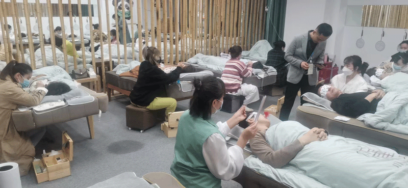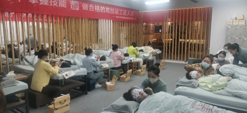 采耳师们全神贯注,考试现场井然有序。