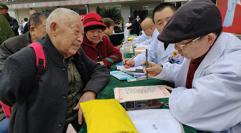 刘老早早的从重庆抵达了成都活动现场,为老兵关爱中心的退役军人和当地社区居民开始了繁忙的义诊。现场气氛热烈,大家积极参与,共同见证了一场医患之间的深情互动。