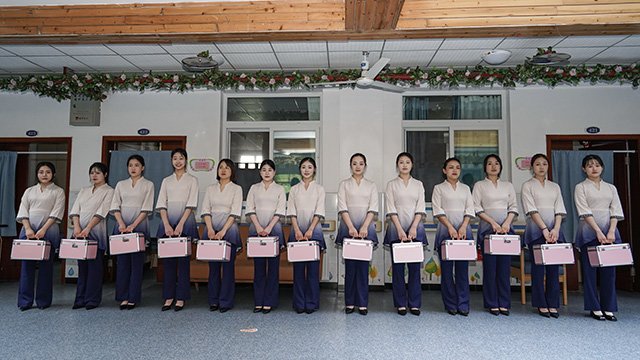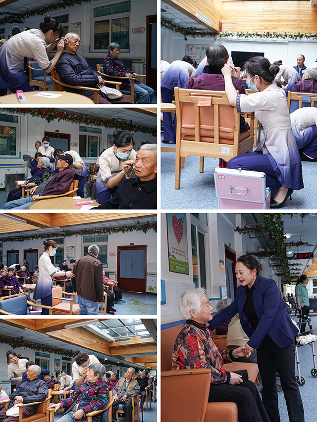 活动当天,金色印象运营中心技术管理部张险锋老师带领13名即将迎来结营典礼的轻养技术学员,组成公益志愿服务队,为福利院的老人提供耳道检查和采耳服务。轻养师们运用专业的检耳镜仔细为每位老人检查耳道,并使用鸡毛棒、鹅毛等工具进行轻柔的采耳。在采耳过程中,轻养师还与老人亲切交流,关心他们的身体状况和生活情况。
